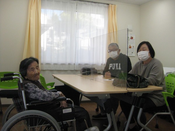 こんにちは!グループホームみんなの家・あきがせの介護ブログです。よろしくお願いいたします。待ちに待った対面での面会ができて嬉しそうでした!!ホットされたひと時でした。