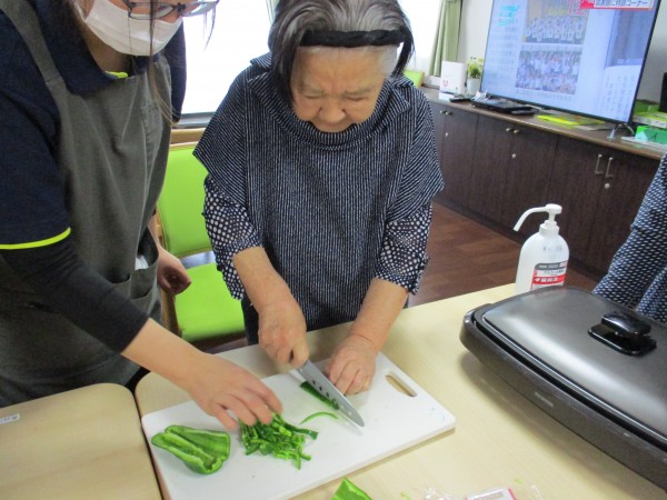 久しぶりの包丁もにぎると、思い出すのか、ものすごい速さで千切りをはじめるH様。