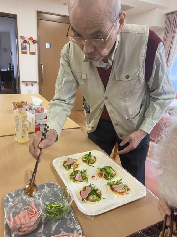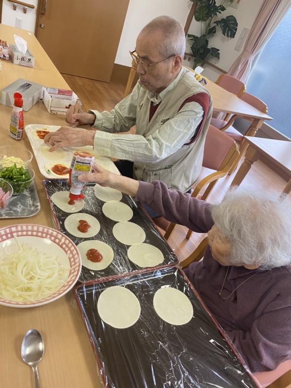 本日の午後二階フロアでは『ピザ』のおやつ作り☆を行いました(๑˃̵ᴗ˂̵)