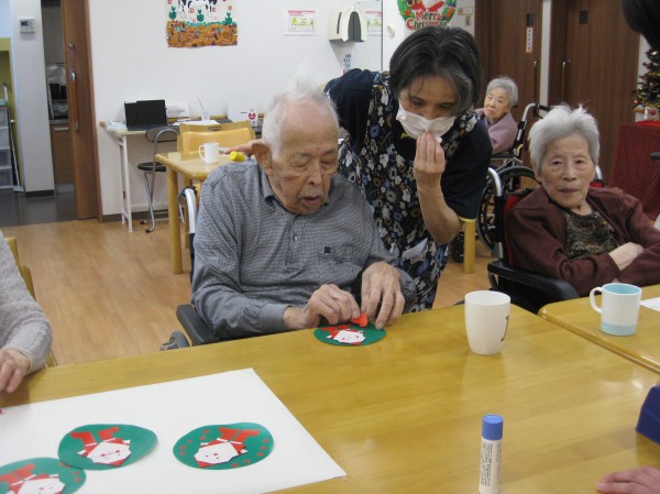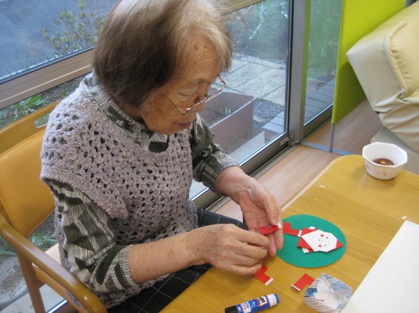 今回は、もうすぐクリスマスということで、みんなでサンタの貼り絵を行いました(^^)/