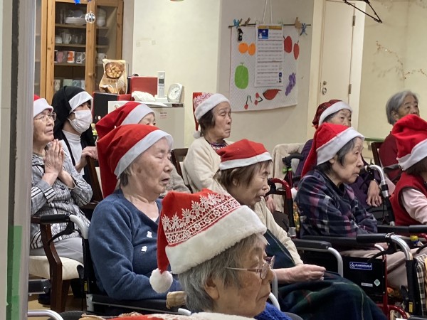 入居者様もサンタ帽をかぶって楽しみにしております。