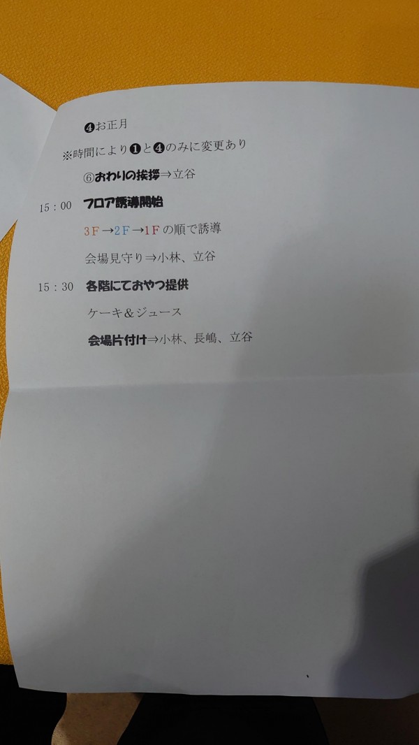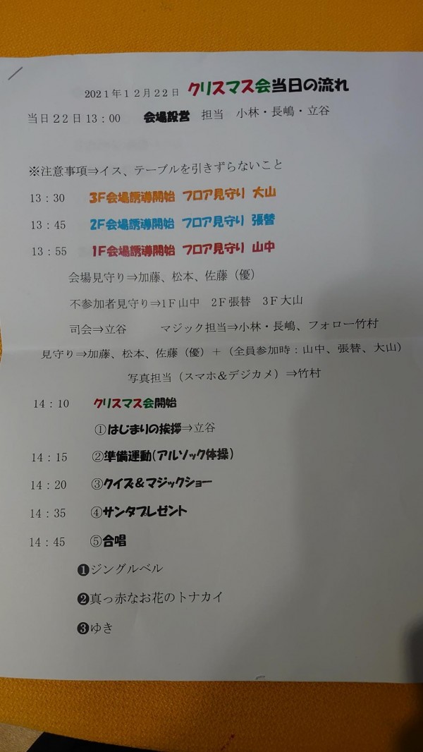 ではここで、今回のクリスマス会の流れをご紹介します(写真)