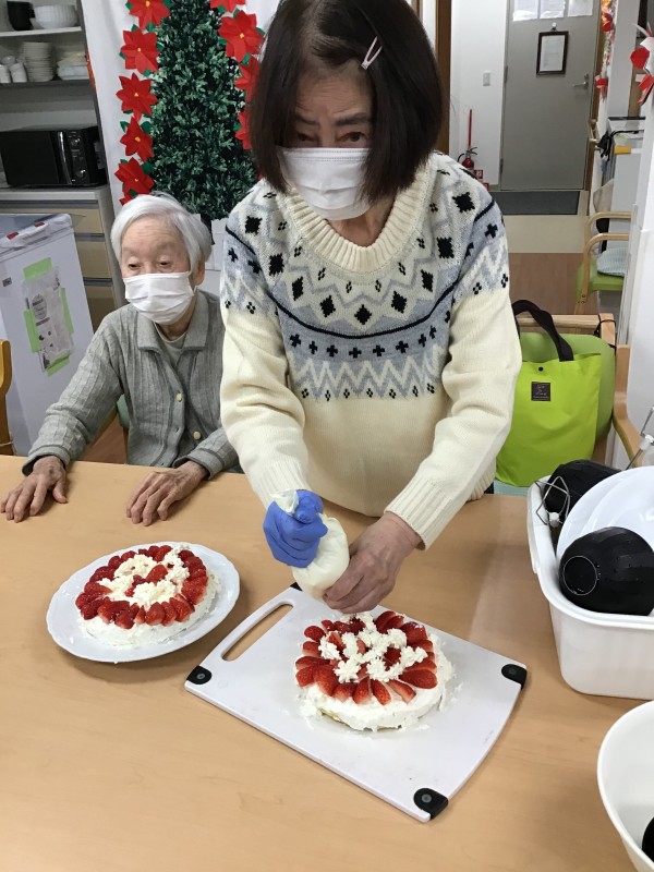本日はクリスマスという事でみなさんでチキンをメインにしたお昼ご飯やおやつにクリスマスケーキ作りをしました????