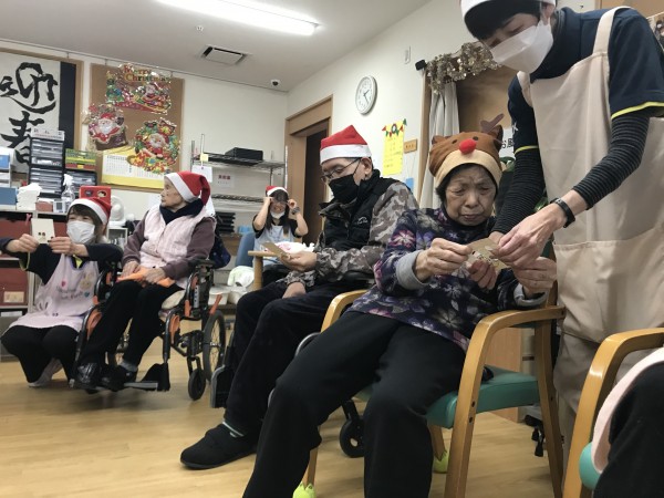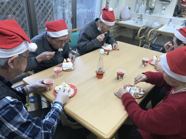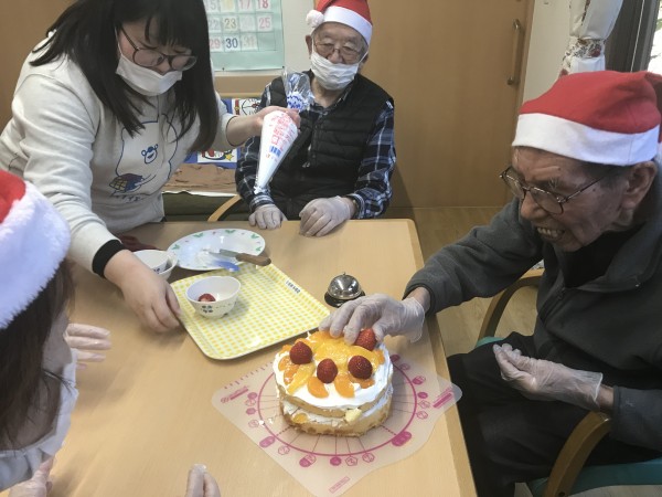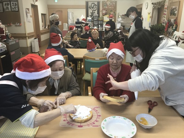ゲームの後はご利用者様、職員でケーキ作り!!!