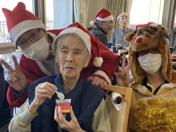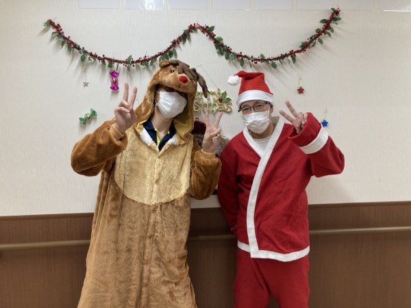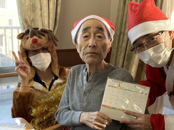 サンタとトナカイが2階のご利用者様にカレンダーをプレゼントしたら、とても喜んでいただけました!