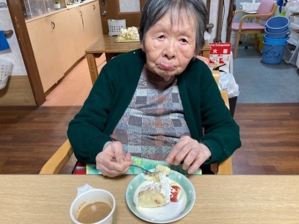 今回もまたクリスマス会の様子をご紹介させていただきます。クリスマスといったらケーキですね。目黒のご利用者様はケーキが大好きなのです。