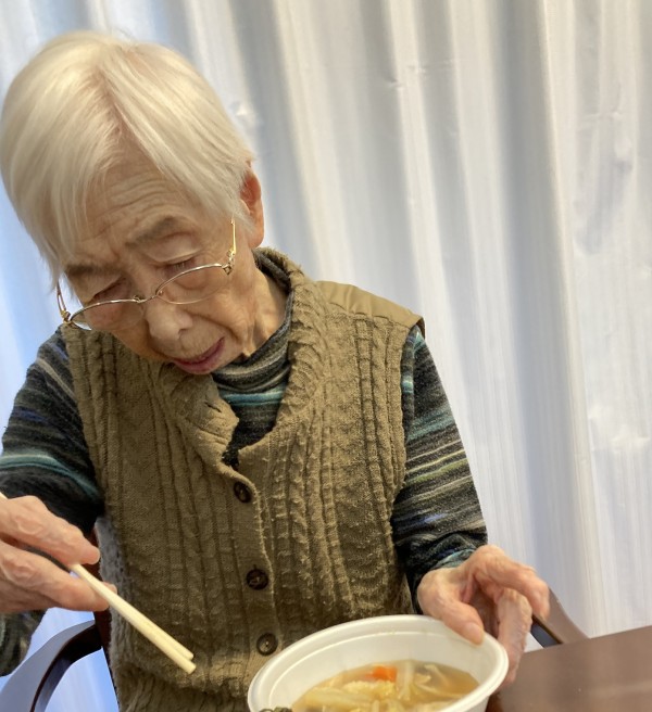 今回のレクリエーションはきりたんぽレク!しかし、ただ職員が作り皆様に食べて頂くだけではちょっと寂しいので、可能な範囲で皆様にお手伝い頂きながらきりたんぽ鍋を作成しました。作成に関わらない方にも安全な距離を保ちながら、きりたんぽ鍋を作っている姿を見て頂きました。作成をしながらトークで盛り上がり、ある利用者様からは「TVの料理番組を見ているみたいだけど、実際に見て匂いを嗅いで、その後で食べられるのが嬉しい」とコメントを頂きました。