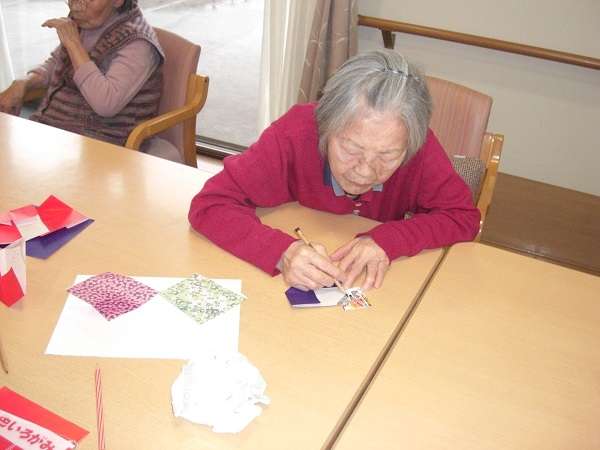 お雛様のお顔は、グループホームの皆様が、それぞれに描かれたものです。