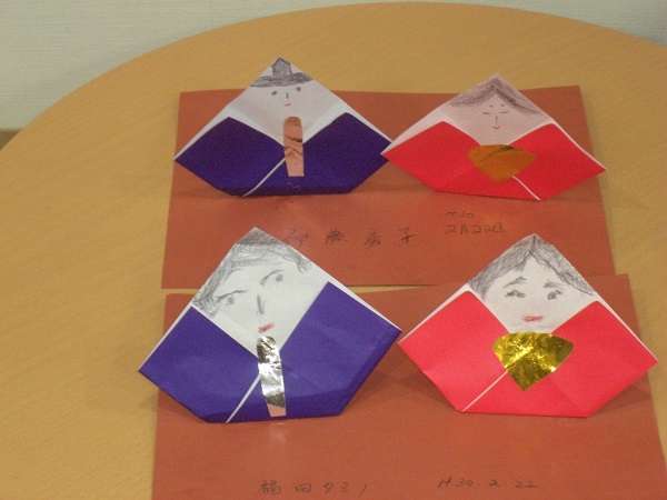 H30.2.22 お天気が悪いので、お雛様をおりました。