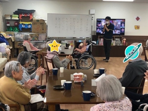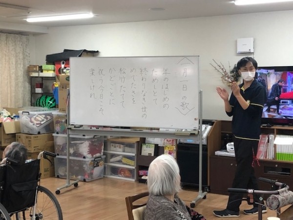 お礼にご利用者様から「一月一日」の歌の合唱をしていただき、ありがとうございました!