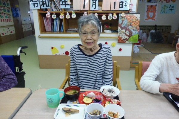 利用者様全員、おせちを見て「美味しそう」と、笑顔でおせちを召し上がってくださいました。