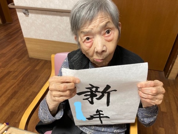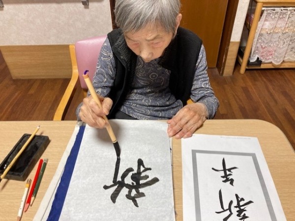 今回はT様が書き初めをしているところの写真を撮りました。普段は計算ドリルや塗り絵をされているT様ですが、お正月ということで一筆書いていただきました( ^)o(^ )上手に書かれていました。