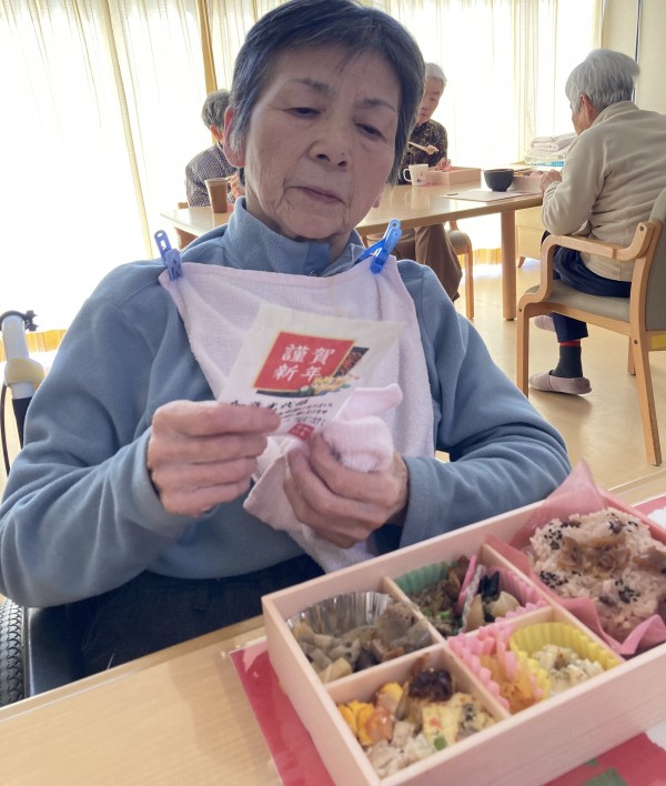 元旦のお昼ごはんに、仕出しですがおせち料理を召し上がっていただきました。