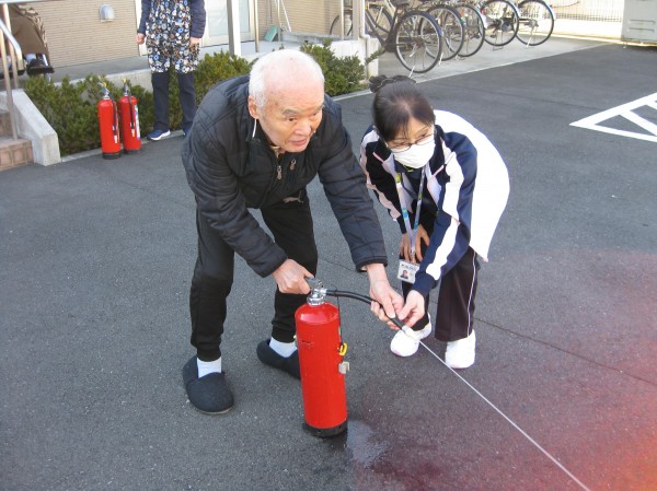 避難訓練に合わせて、消防署への通報訓練と初期消火訓練も行いました。