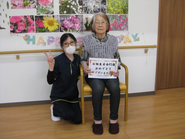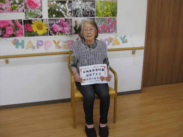 1/13 93歳になりました。お誕生日おめでとうございます! 健康で楽しく過ごしていきたいと話されていました。職員一同、安全にお過ごしいただけるようにサポートしていきたいと思います。