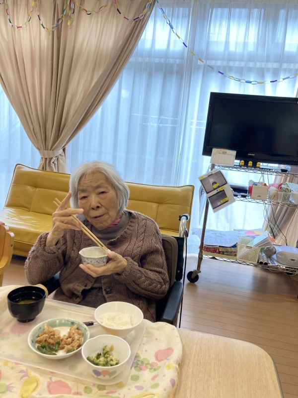 今日も皆様、栄養満点の食事を「美味しいねえ~」と笑顔で