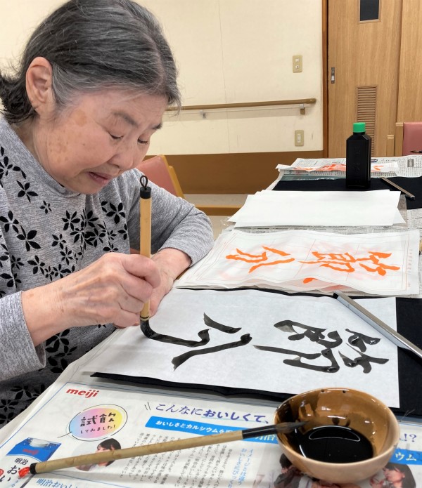 新年初めての書道クラブなので書き初めですね♪