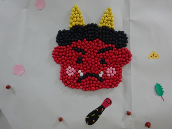 節分の文字は折り紙をちぎって貼ってもらいました。