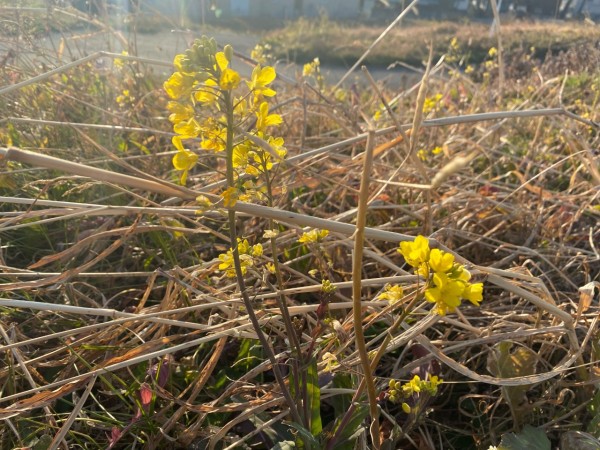 今は冬なので、やや寂しい景色ですが、菜の花が咲き始めていました。