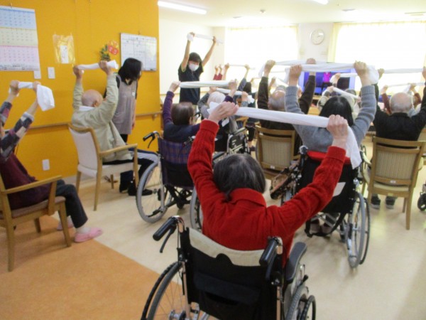 2月11日、リモートでタオル体操を行いました。