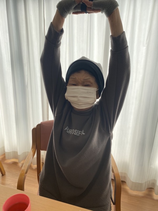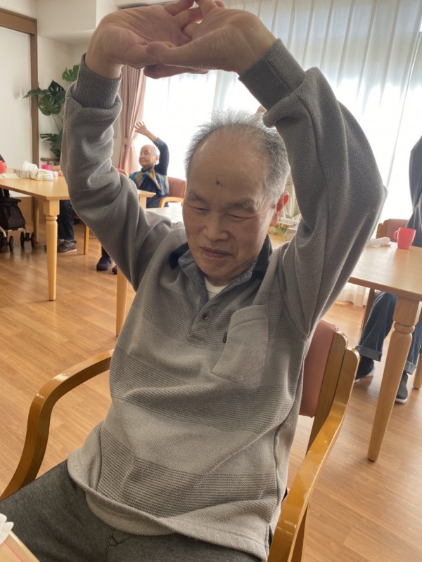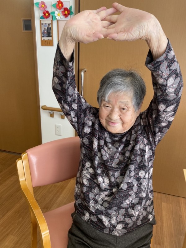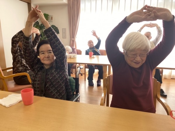 さて、二階フロアではお食事前に『集団体操・口腔体操・早口言葉』に皆様大変意欲的に参加されていました。