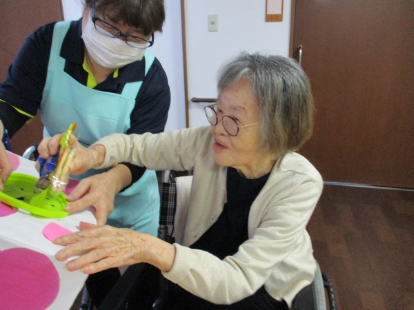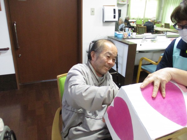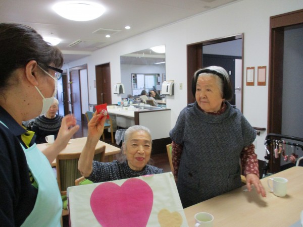 2月14日はバレンタイン企画という事で午後のお茶の時間に【お菓子のつかみ取り】を行いました(^^♪