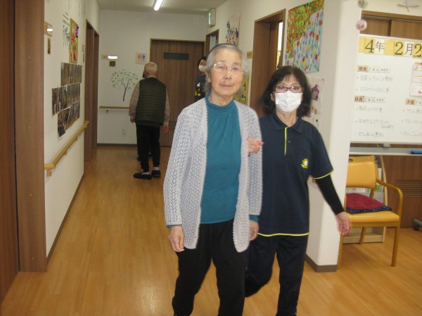 コロナ禍でなかなか外には出れませんが、体力維持の為ホーム内の廊下を歩きます!!