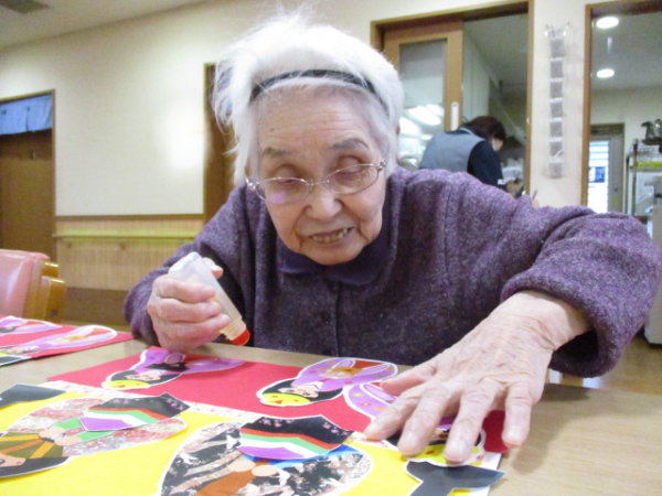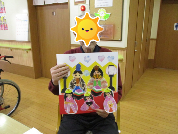外は寒いですが温かいホーム内でおひなさまの貼り絵を作成されました(^_-)-☆