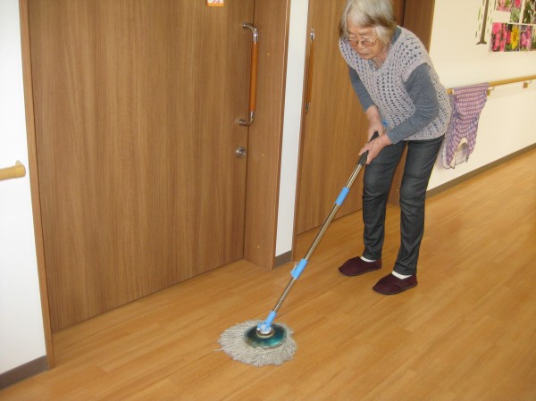 こんにちは!グループホームみんなの家・あきがせの介護ブログです!よろしくお願いいたします。ホールや廊下のお掃除をしているご様子です!! 筋力維持できたようです( ^ω^)・・・