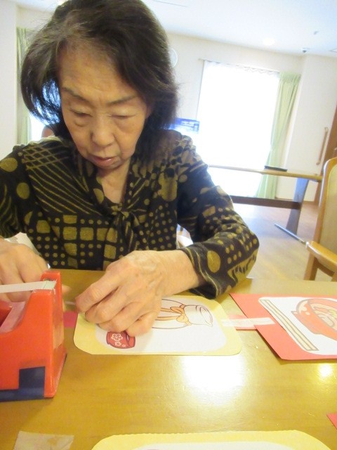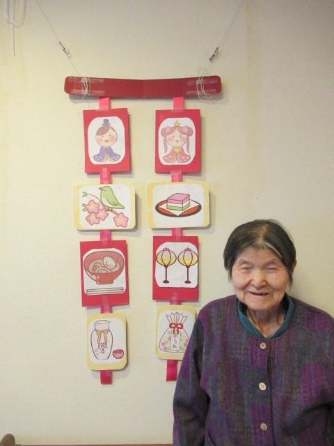 春の訪れを祝い、健康を願う意味を込めて皆さんでひな祭りの飾りを作りました。