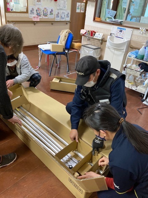 お部屋で設置が困難だったためフロア内で組み立て開始です。