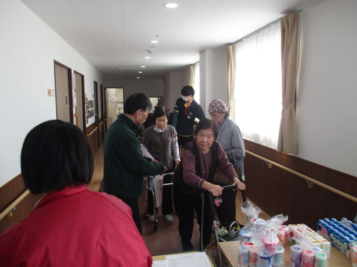 久しぶりのヤクルトレディの訪問販売。介護付有料老人ホームみんなの家与野公園では、定期的に訪問販売の業者さんを呼んで、ご利用者様の購買意欲の維持に努めています。今まで、ご自分で買い物へ行き、選んで買っていた時と同じように、ご入居されてからも変わらない日常生活を送っていただきたく始めました。「ヤクルトさん来たよ~」と声を掛けると、ご利用者様も声を掛け合い、お話しながら販売会場へ集まって来られます。「今日はこれかな・・・。」「いつものね」「私はこれ!」・・・と品定めも真剣。でも選びながらみなさん笑みがこぼれていました。