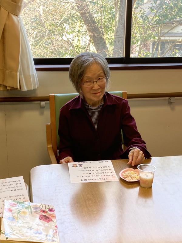 お祝いと言っても盛大なイベントではありませんが、入居者様・スタッフで歌を唄ったり