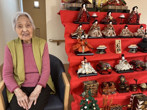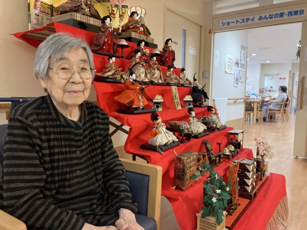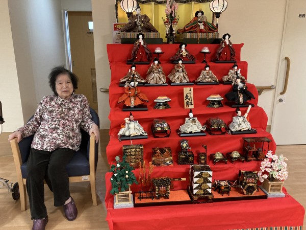 グループホームみんなの家西東京では、施設内のエントランスの他にもエレベーターホールに8段飾りのひな壇を飾ってあります。雛人形を鑑賞して頂き後に記念撮影をしました♪皆様の柔らかい笑顔がとても印象的でした!