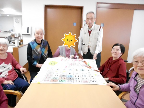 ご利用者様にカレンダーの色塗りをしていただいたり、