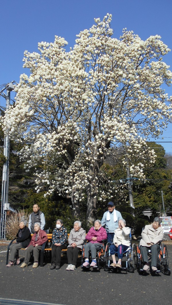 ここ数日暖かい日が続いていますのでホーム前の木蓮が満開に
