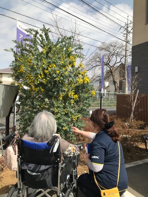 昨日は気温も上がりお天気も良かったのでご利用者様と「ミモザ」の前で記念撮影です。昨日の「ほっこりした瞬間」をお知らせしました。