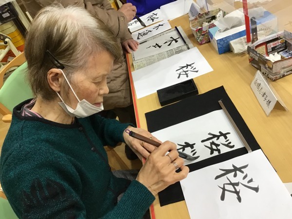 写真では少し分かりにくいのですが、お手本を職員の娘さんが書いてくれたので、皆さん