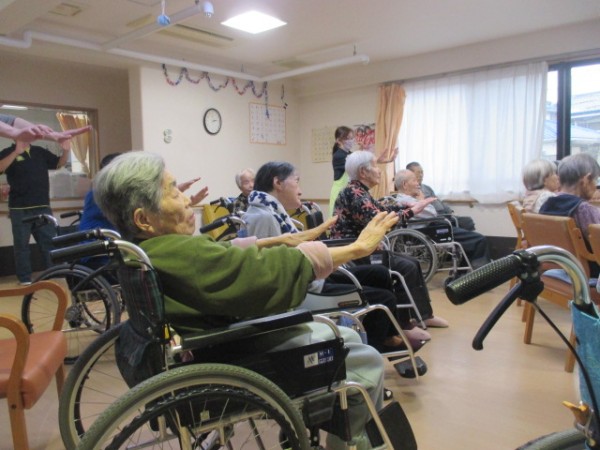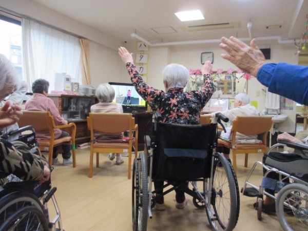 いうことで、音楽(リズム)に合わせて体操を