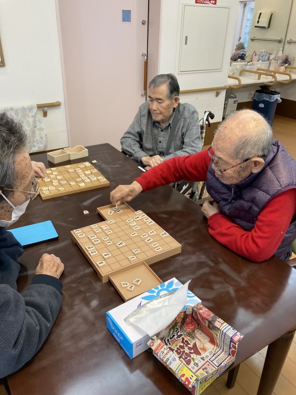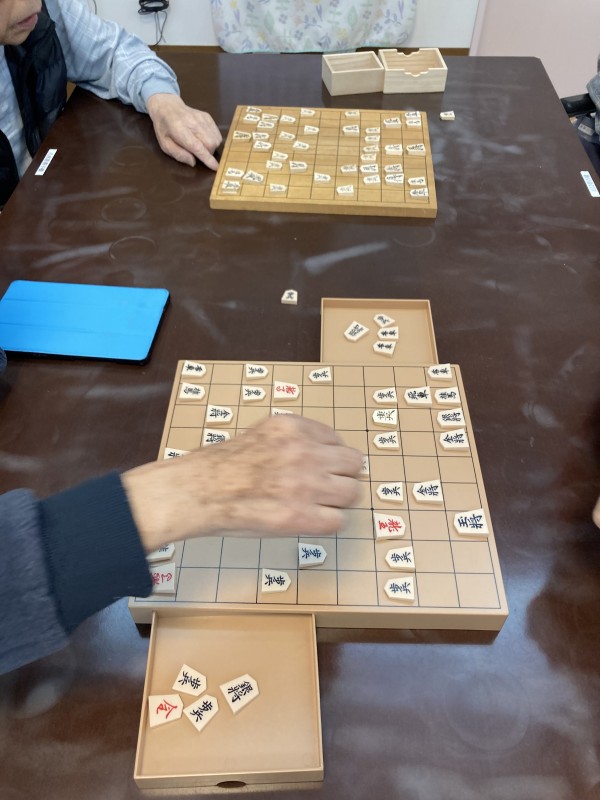 今回の将棋大会は勝ち負けよりも、職員も交えて皆で楽しく話しながらの将棋となりました。体調等の問題により、今回ご参加頂けなかった方もいらっしゃいましたが、今回限りではなくまた将棋大会を開催していきたいと思います。将棋だけではなく、トランプやオセロ等様々なレクを実施しています。