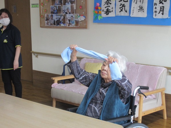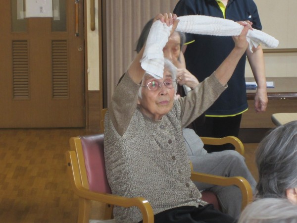 タオルを使用し、伸ばしたり・広げたり・回したり、掴んだりして腕の可動域を広げる体操の一つです。