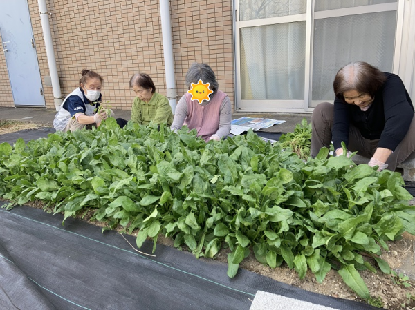 本日はご利用者様とご一緒に、畑のほうれん草収穫を行わせて頂きました。