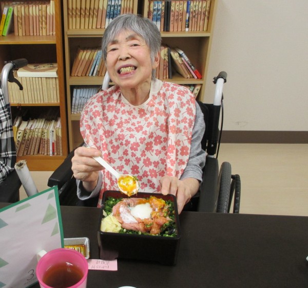 3月にお誕生日を迎える皆様にお集まりいただき、誕生日会を実施しました。みな様に好きな料理を選んで頂き、選んで頂いた料理をデリバリーにて取り寄せ3月に誕生日を迎える皆様と共に召し上がりました。選んだ食事は皆様それぞれ違いますが、ホームからケーキと粗品をプレゼントさせて頂きました。