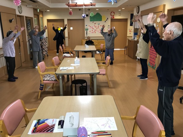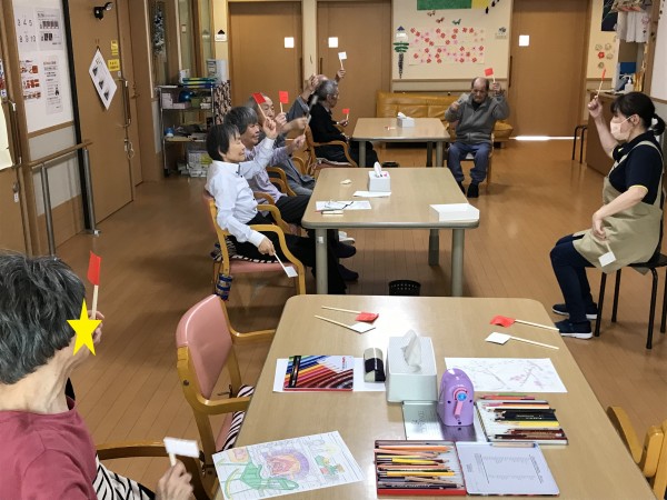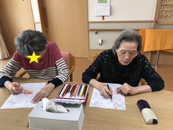 日中は塗り絵や体操、お手伝い、昼寝等皆様過ごし方は様々です。