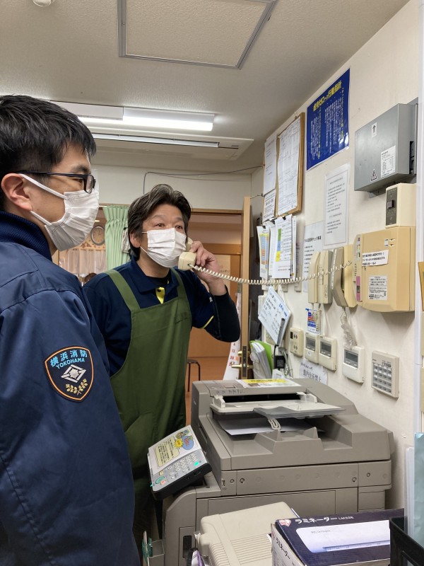 担当はO職員。ベルを鳴らすのも、火災報知器への折り返しの連絡を受けるのも、初めての体験です。