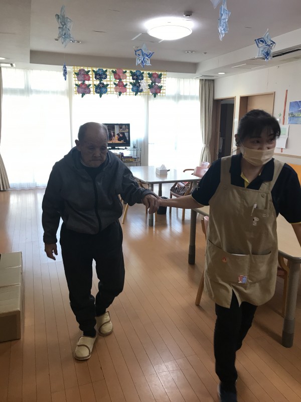 避難誘導については、お声掛けを行いご自分で歩ける方は待機場所まで歩いて頂き(見守りはしていますので、ご安心ください)