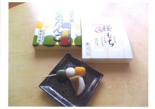 今回のおやつは、『桜もち』と『餡入り三色だんご』