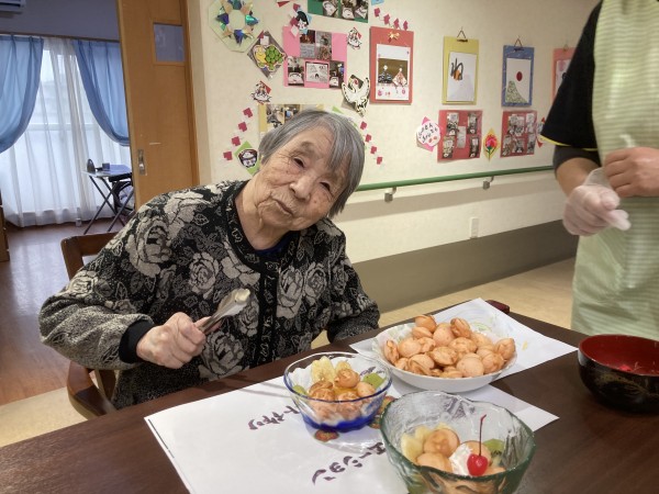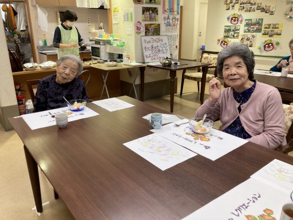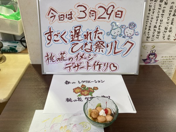 春のレクリエーション ~桃の花デザート作り~