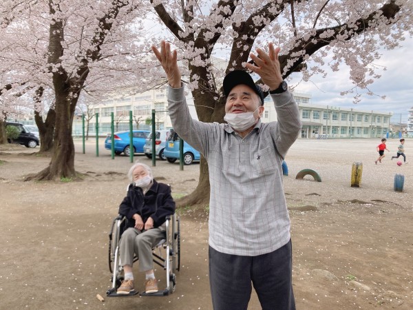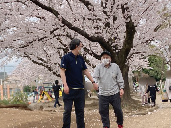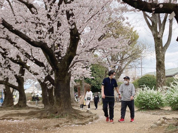 公園についてすぐ、満開の桜に大喜びのお父様!
