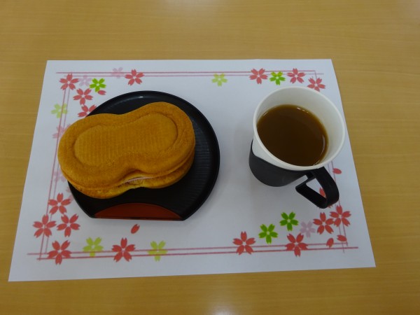 送迎時にサクラを見ることが出来て皆様喜ばれていましたので、おやつも可愛いサクラのデザインのランチョンマットを使ってて提供させていただきました☆★